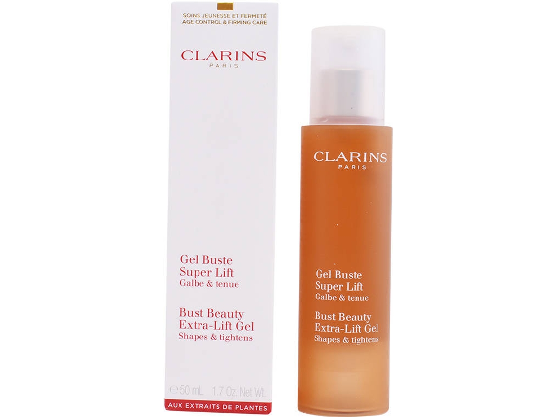 More Info About Gel Buste Super Lift. It is available in packs of 50ML. Clarins GEL BUSTE SUPER LIFT. Profile and shape the bust. Raise your chest! This refreshing gel has an immediate lifting effect and visibly improves the overall appearance of the chest. Vu sua extract boosts collagen and helps strengthen, tone and soften the chest, as well.